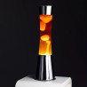 Lámpara de Lava con base cromo, líquido transparente y lava naranja